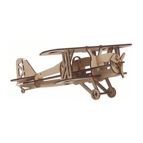 Puzzle 3D biplan couleur neutre en bois à construire soi-même.