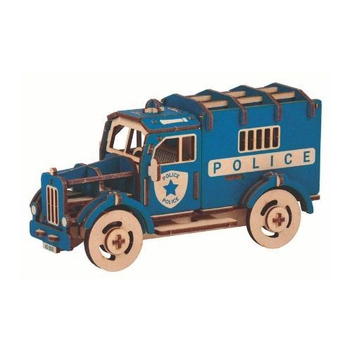 Camion police bleu en bois à construire soi-même.