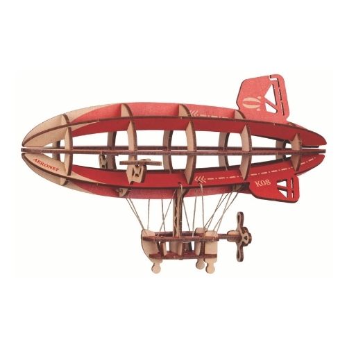 Dirigeable rouge en bois à construire soi-même.