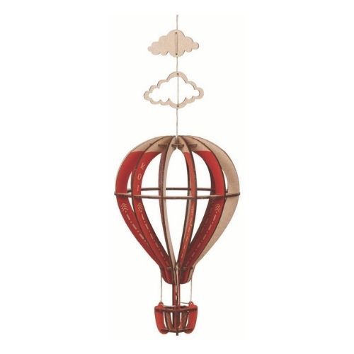 Montgolfière rouge en bois à construire soi-même.