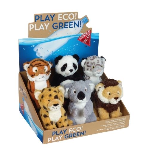 Assortiment avec 6 animaux de la jungle 22 cm en bouteilles plastiques recyclées. Certifiées GRS Intertek.