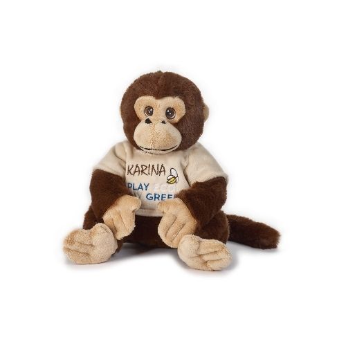 Peluche singe assis en bouteilles plastiques recyclées. Certifiées GRS Intertek.