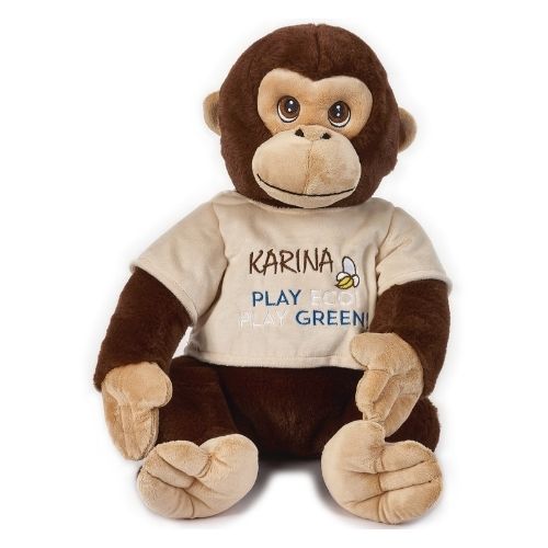 Peluche singe assis en bouteilles plastiques recyclées. Certifiées GRS Intertek.