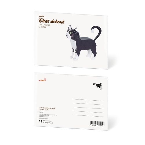 Maquette chat debout en papier FSC 100% recyclé à construire soi-même.