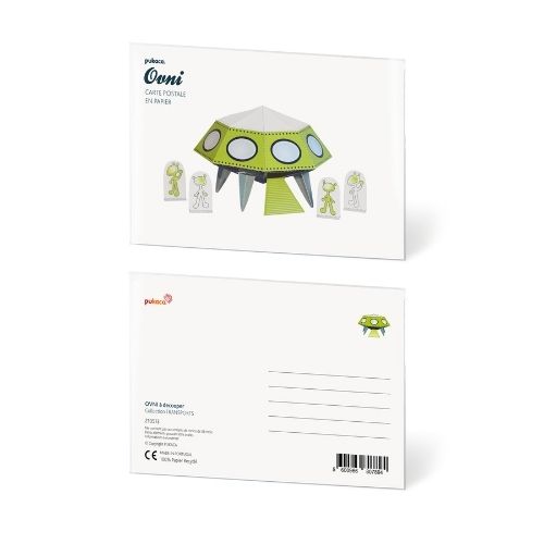 Maquette ovni en papier FSC 100% recyclé à construire soi-même. En format carte postale.