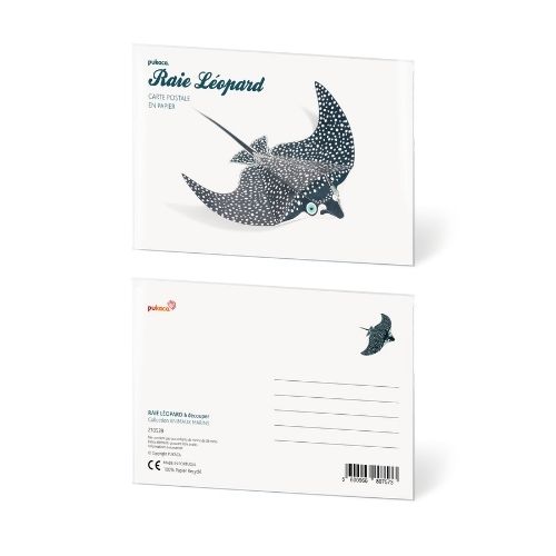 Maquette raie léopard en papier FSC 100% recyclé à construire soi-même. En format carte postale.