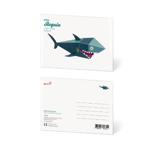 Maquette requin en papier FSC 100% recyclé à construire soi-même. En format carte postale.