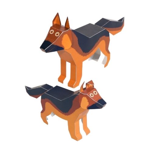 2 Bergers Allemands en papier FSC 100% recyclé à construire soi-même.