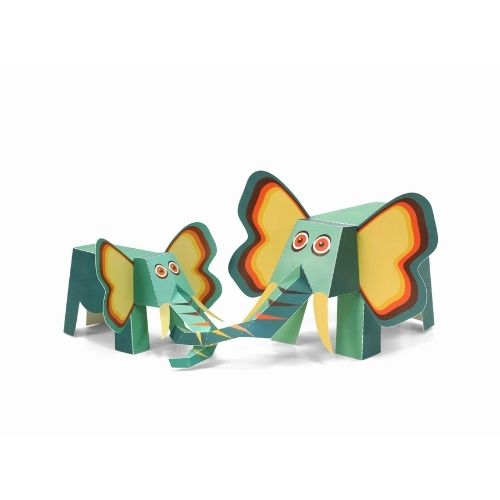 2 éléphants en papier FSC 100% recyclé à construire soi-même.