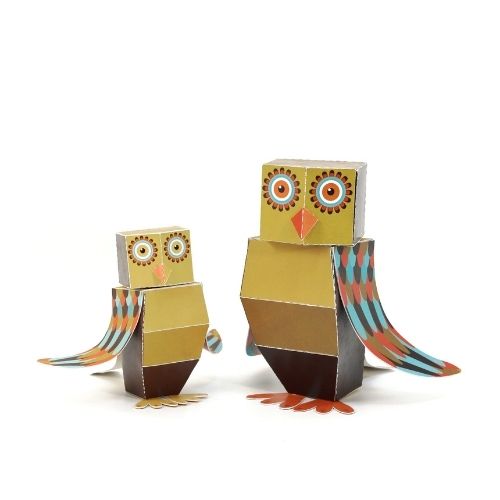 2 Hiboux en papier FSC 100% recyclé à construire soi-même.