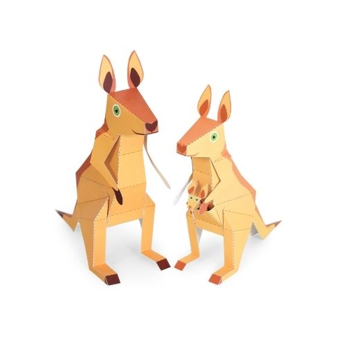 2 kangourous en papier FSC 100% recyclé à construire soi-même.