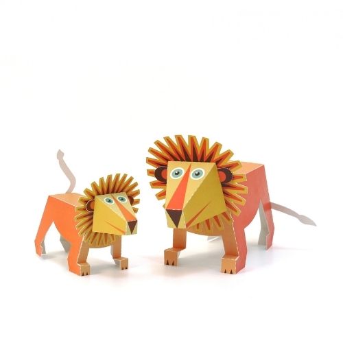2 lions en papier FSC 100% recyclé à construire soi-même.