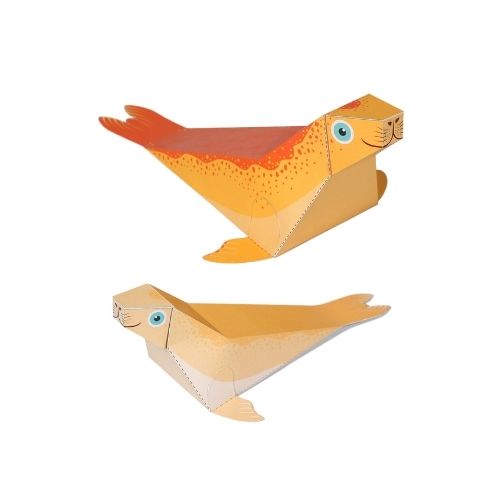 2 phoques en papier FSC 100% recyclé à construire soi-même.