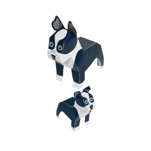 2 Terriers de Boston en papier FSC 100% recyclé à construire soi-même.