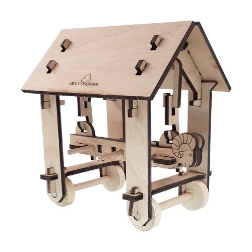 Bélier en bois à construire soi-même. Kit avec 61 pièces.