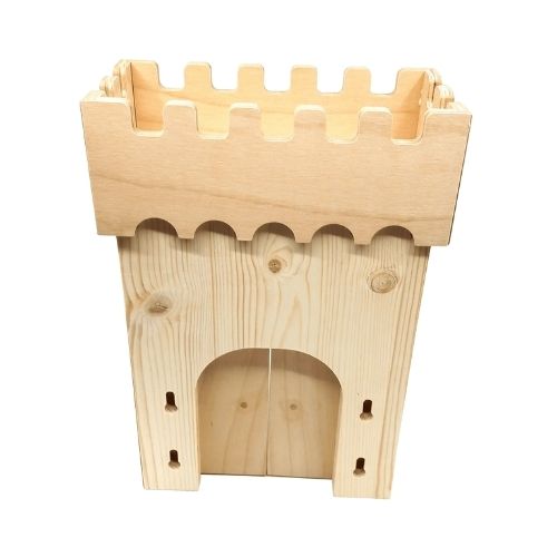 Kit complet en bois pour construire une porte avec 4 murs, 4 remparts et 1 étage.